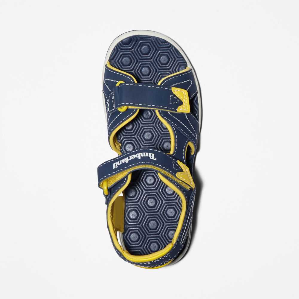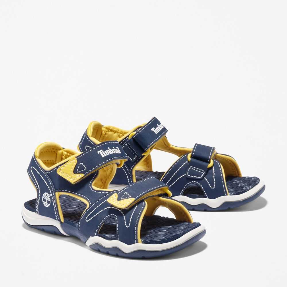 This lightweight 2-strap kids' sandal is made with water-friendly synthetic leather and features a hook-and-loop closure for convenience and ease,and an eco-conscious fabric lining.