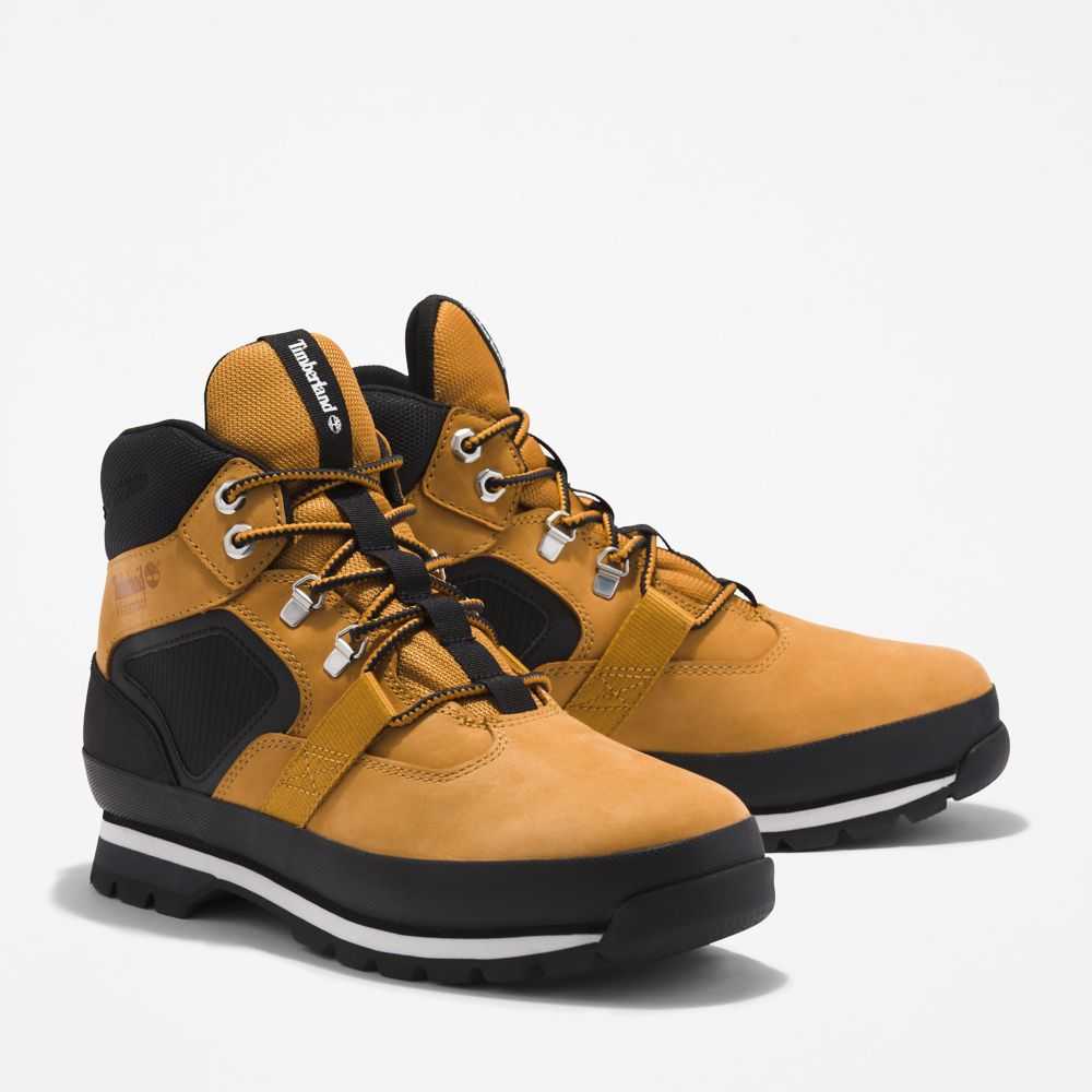 We created our first pair of Euro Hikers way back in 1988.This season we reimagine them for today.Made with a steel shank for arch support,a cushiony EVA-blend foam midsole,a rubber lug outsole for traction,and a protective climbing rubber tip,it's also fully waterproof with our exclusive TimberDry™ waterproof membrane made of 50% recycled plastic bottles.Other Earth-conscious materials include responsibly sourced leather and linings.