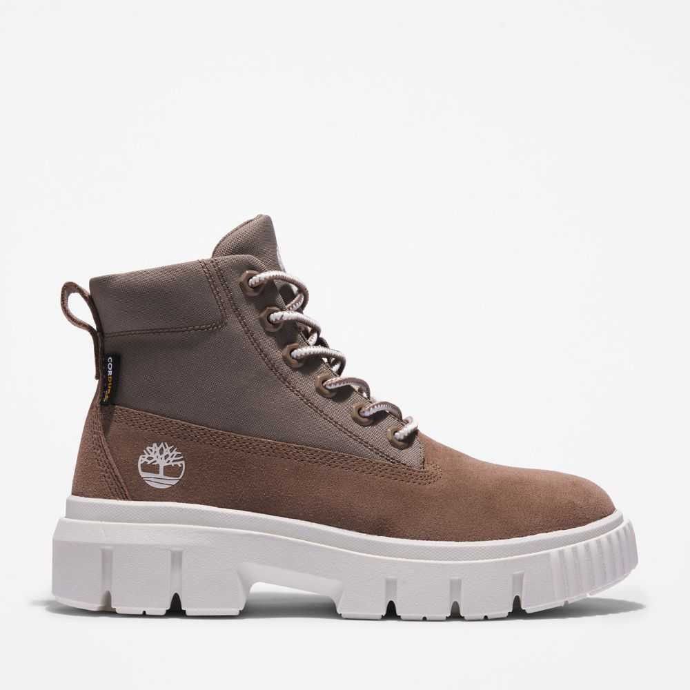 Worksite inspired design at the edge of utility.Our lightweight Greyfied boots are perfect for moving from winter to spring.Made with rugged Cordura® fabric and stain-resistant Defender Repellent Systems® treatment to help keep them looking great,these women's leather and fabric boots also feature a rubber-pod outsole for traction on slippery surfaces.The upper also contains leather from a tannery rated silver by the Leather Working Group for its environmental practices.