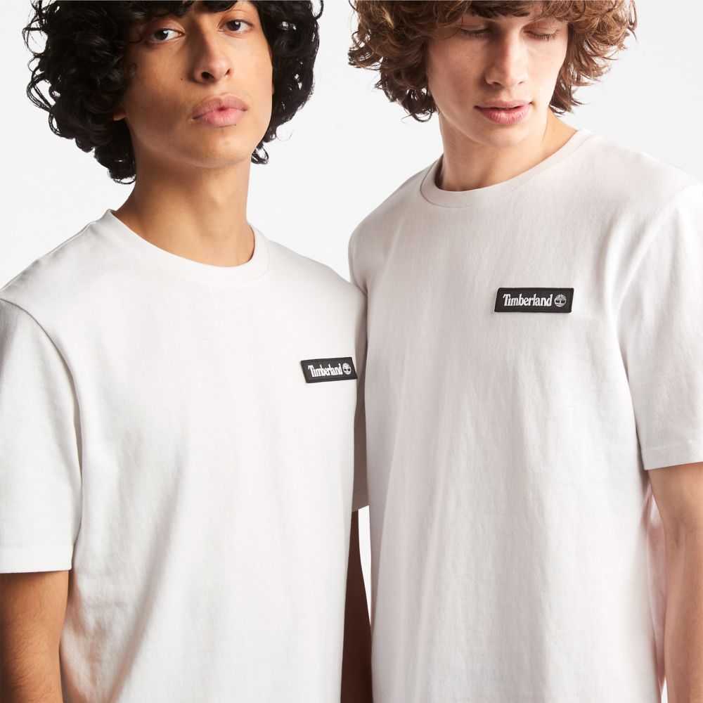 • Woven Timberland logo label at the chest