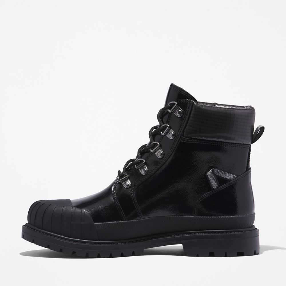 Boots with attitude.Their edgy look is backed by powerful features,including a steel shank for arch support,speed-lacing system,rubber toe bumper,and high-traction rubber lug outsole.They're also crafted with eco-conscious materials—including our exclusive TimberDry™ waterproof membrane made of 50% recycled plastic bottles.