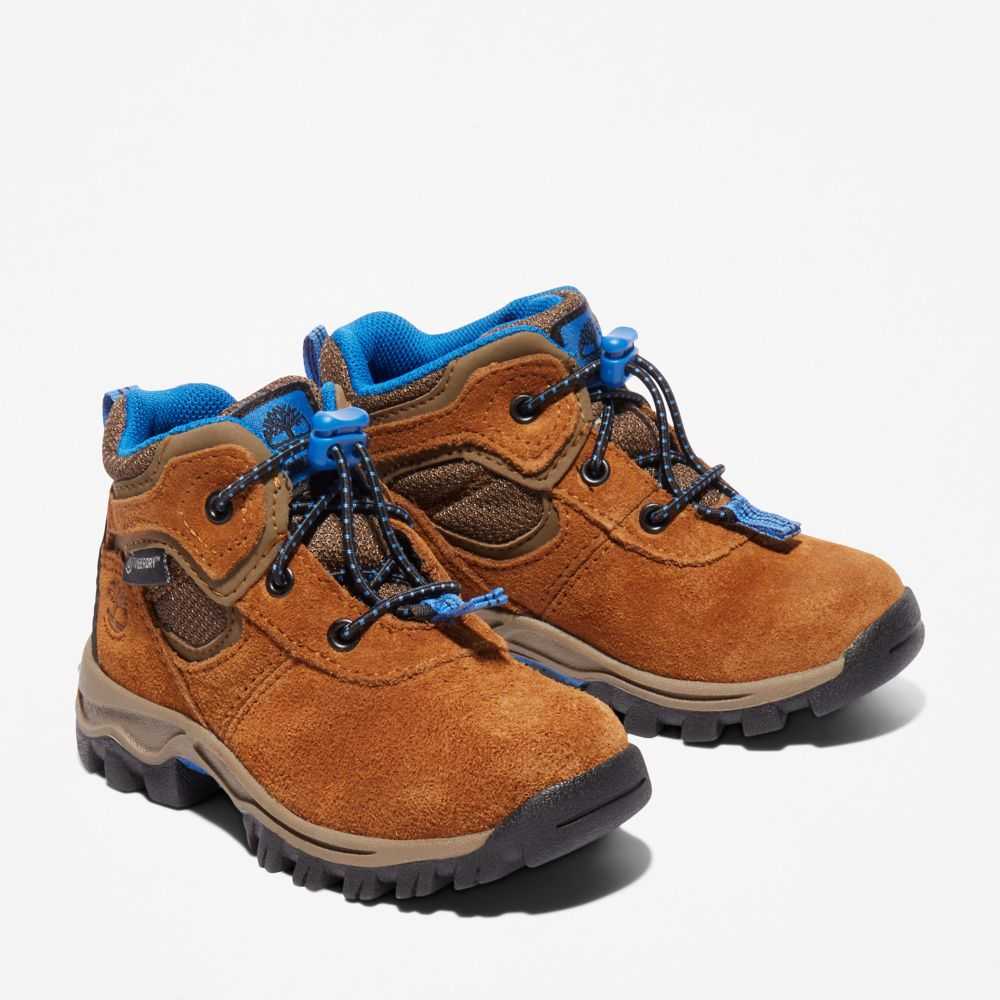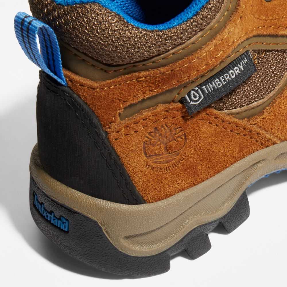 The TimberDry™ membrane made of 50% recycled plastic makes these kids' hiking boots completely waterproof,while the "Does it Fit?" sockliner lets you know when it's time for a bigger pair.