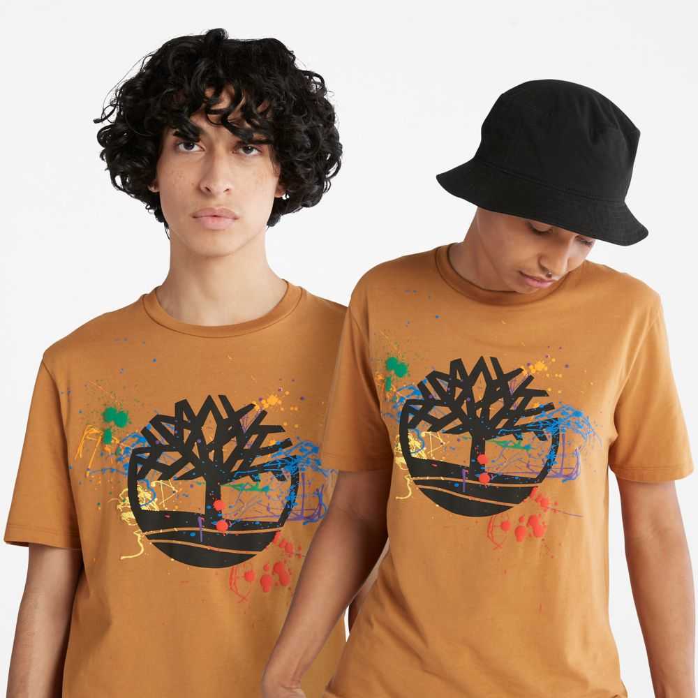 Embrace creative expression with this splatter paint logo tee,made entirely with cotton grown without harmful chemicals or pesticides.