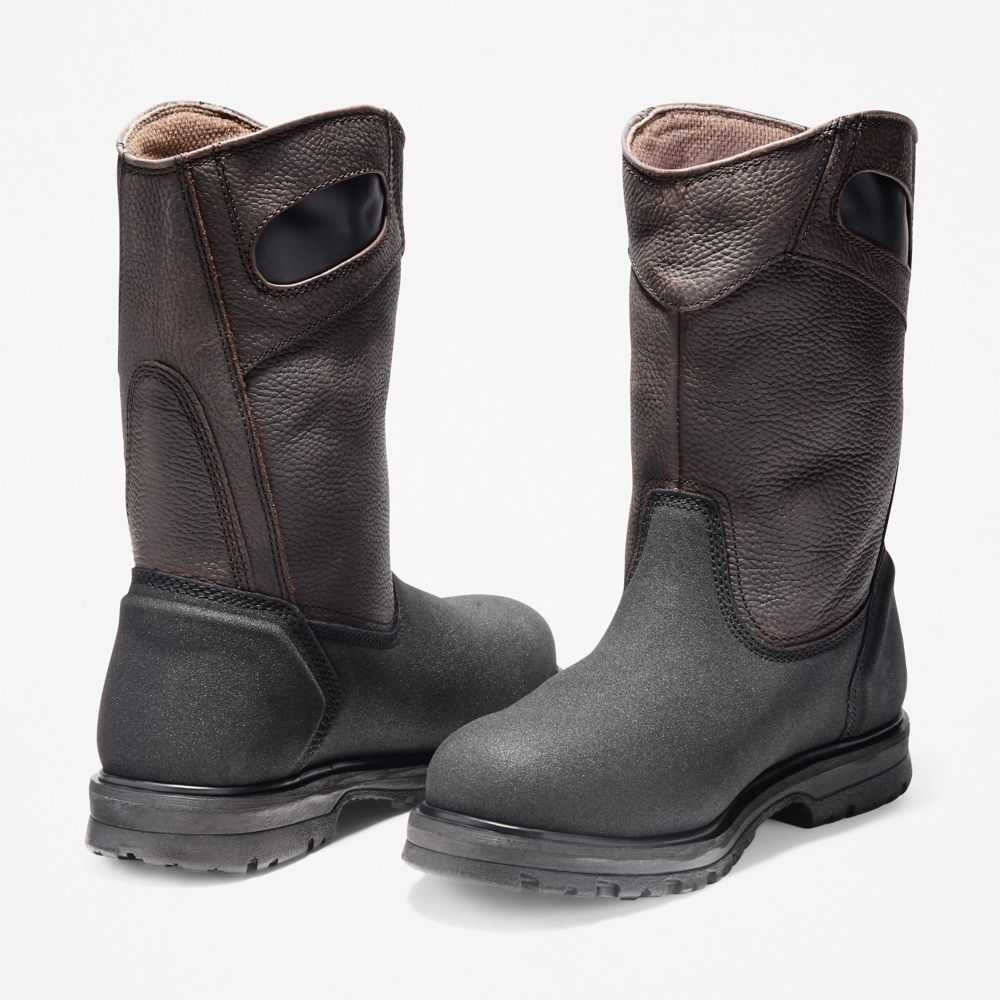 Featuring our unique grip pull-on feature for ease of entry,our durable PowerWelt steel-toe Wellingtons also have a steel shank for protection and structural support,and rugged outsoles for superior traction at the job site.