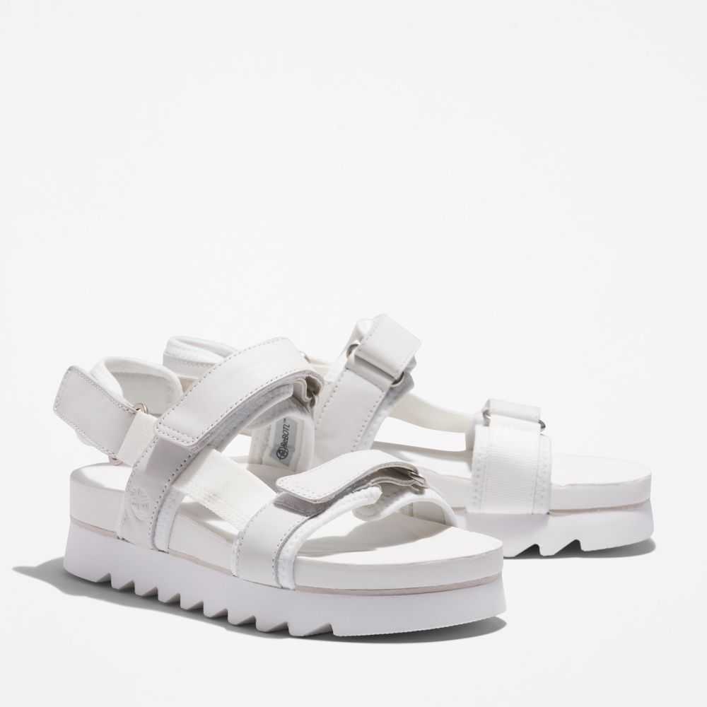The picture of summer ease: casual women's sandals with plenty of cushioning underfoot,secure webbing straps that can hold up to a sandy beach,and convenient hook-and-loop closure.They also contain leather from a tannery rated silver by the Leather Working Group for its environmental practices.
