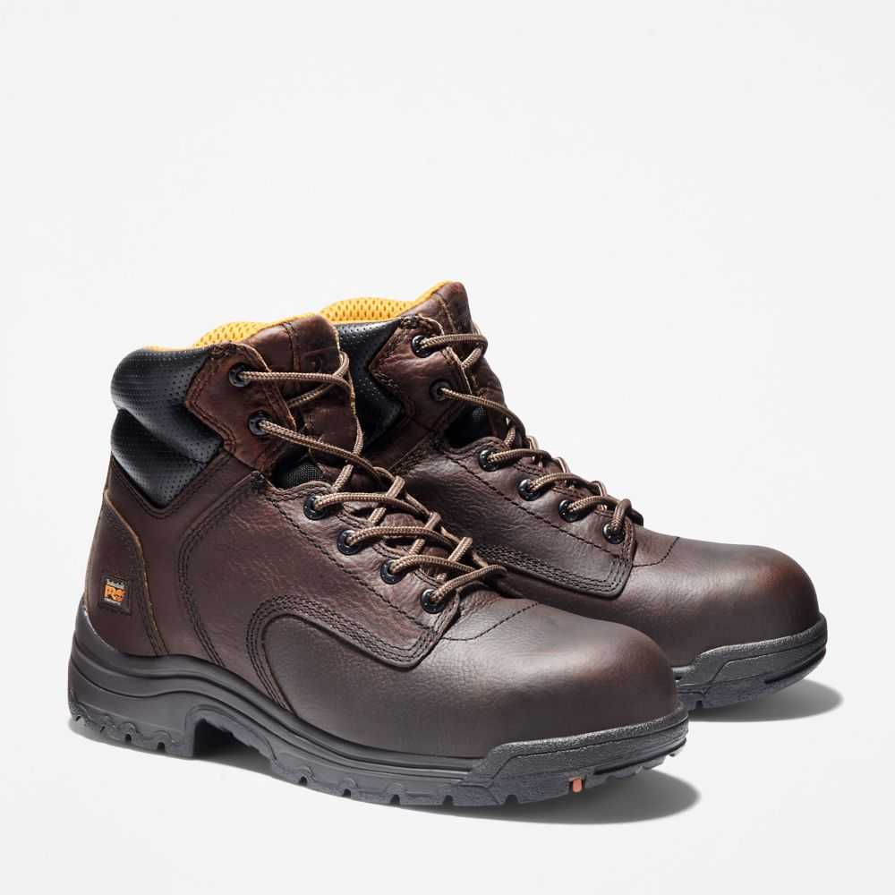 This is a classic TiTAN® work boot—dependable,comfortable,and ready to protect and cushion your feet during long days on the job.These comp-toe boots feature cement construction for flexibility,electrical hazard protection,a breathable footbed,and a lightweight,cushioning midsole.