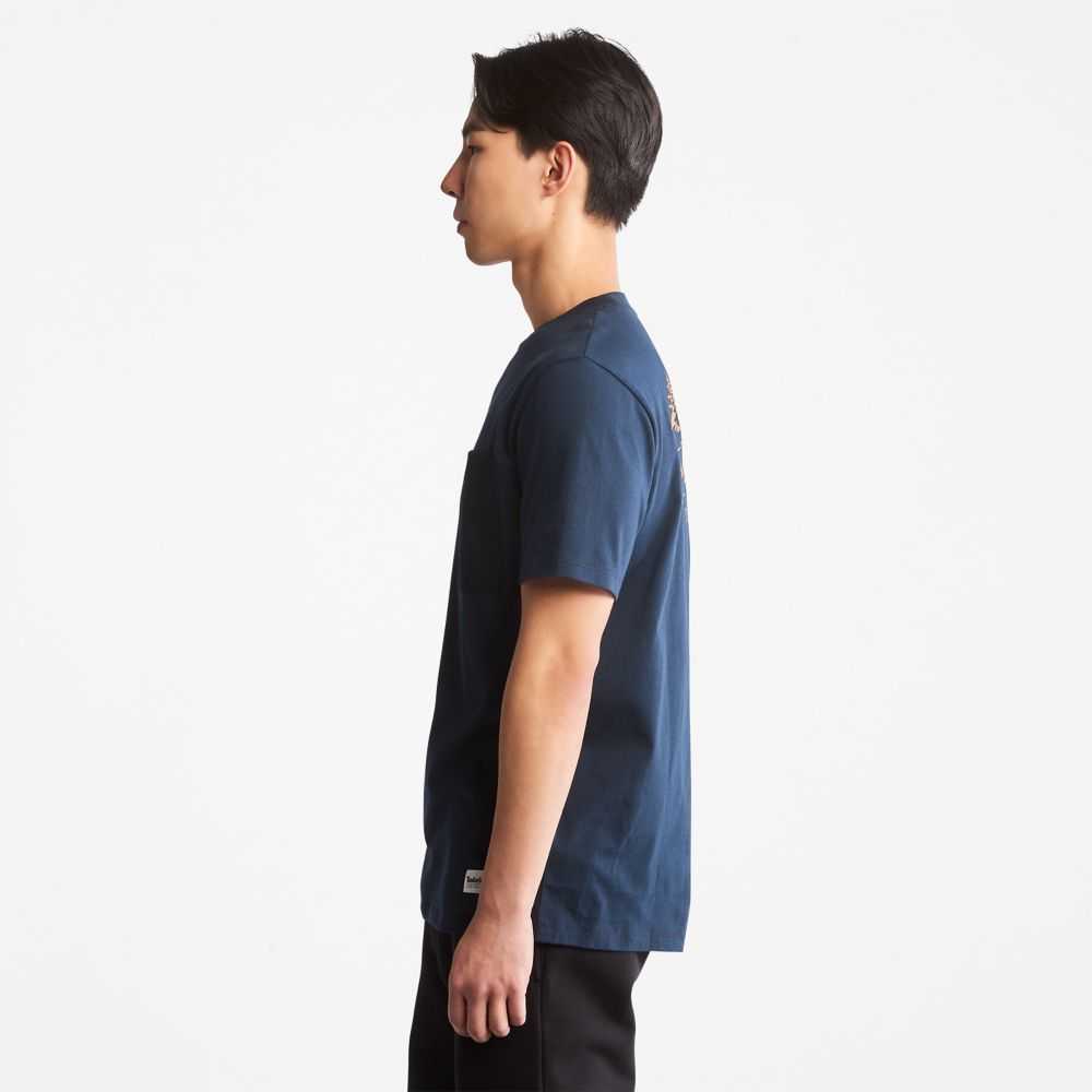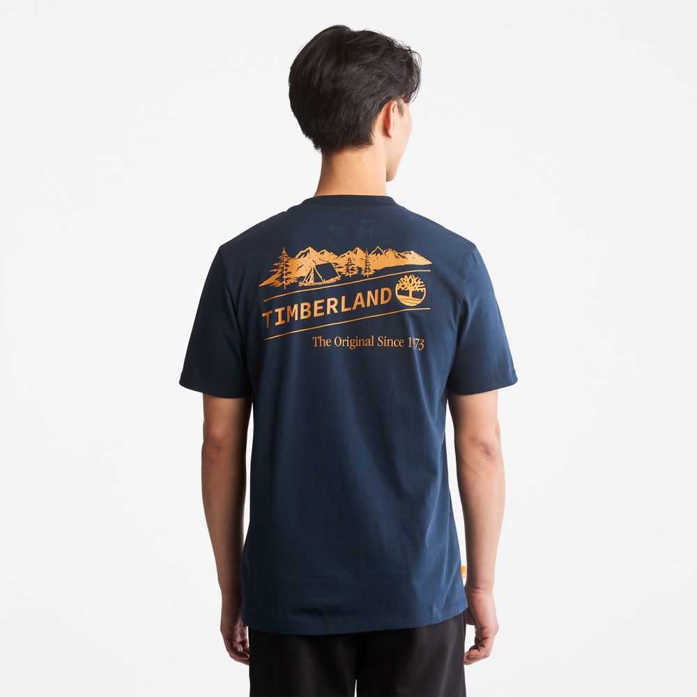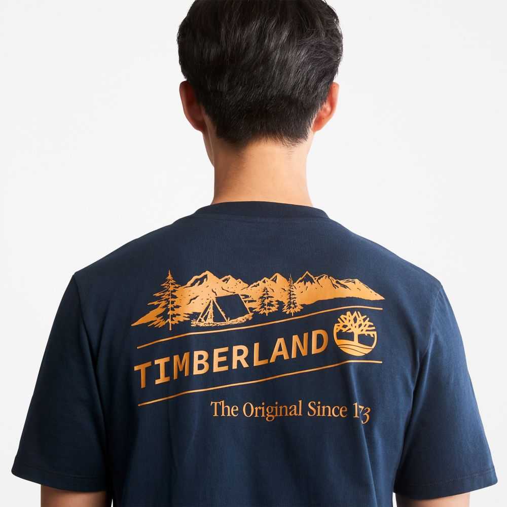 Display your love of the great outdoors with this men's tee featuring a dramatic outdoor-heritage graphic on the back.Organically grown cotton fabric shows your respect for the environment,too.