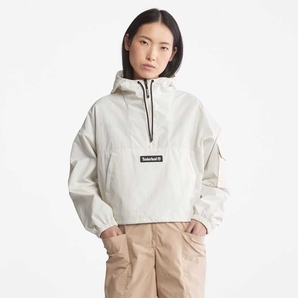 With a trendy cropped style and comfy relaxed it,this lightweight,water-repellent anorak is your go-to jacket in warmer weather.